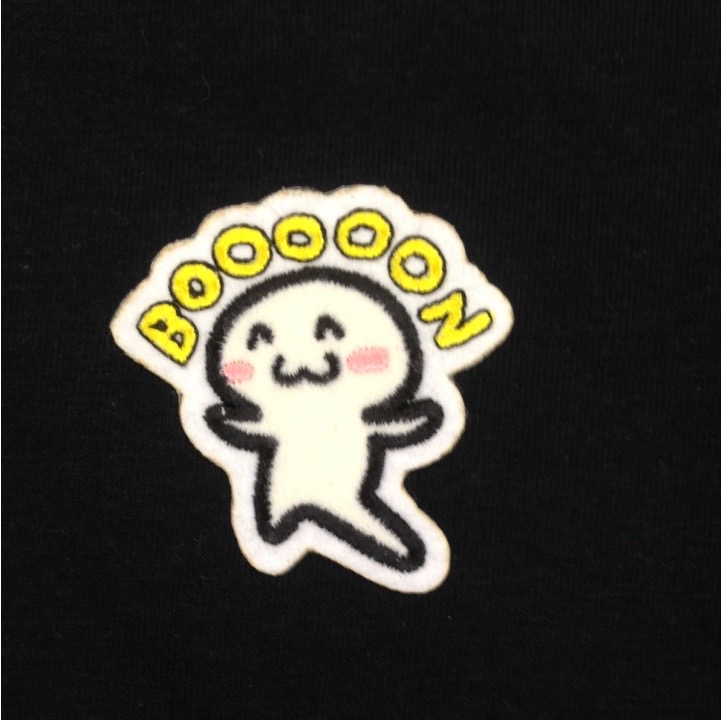 ブーンワッペン 作りました!やっとプレス機でプレスしましたよ。 この夏、自分もフル活用しています。 青のシマシマは楳図先生に対抗しているわけではなく、赤のシマシマ自分でも持っているのでさわやかにしてみました。